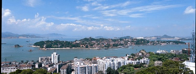 前面是廈門市 , 後面是鼓浪嶼全島, 左邊海中那塊石頭稱印斗石 . 它像皇帝用的玉印璽 .