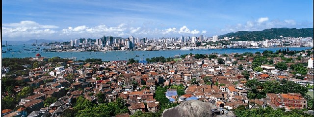鼓浪嶼東區 ,左邊紅色圓屋頂是八掛樓<鼓浪嶼歷史博物管>和英華中學 . 對面是廈門市 .